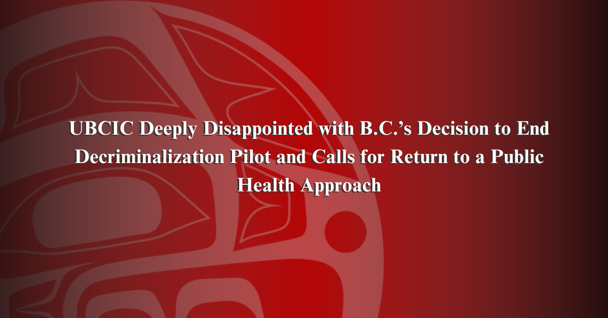 UBCIC Deeply Disappointed with B.C.’s Decision to End Decriminalization Pilot and Calls for Return to a Public Health Approach