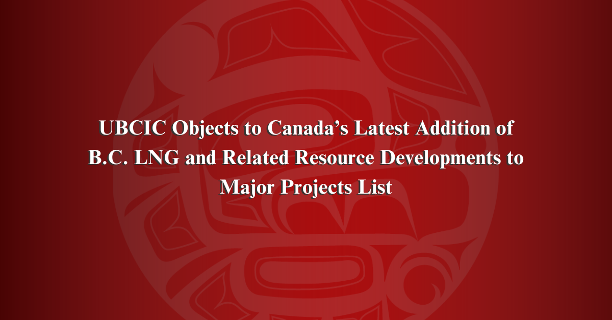 UBCIC Objects to Canada’s Latest Addition of B.C. LNG and Related Resource Developments to Major Projects List